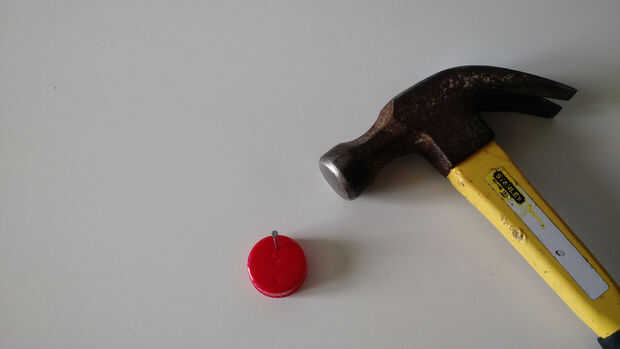Usando el martillo y el clavo, perfore 1 orificio en la tapa de la botella cerca del borde. Golpe un 2 agujero directamente opuesto a la primera, otra vez cerca del borde.