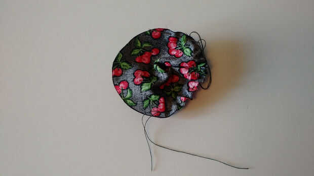 Mano coser una puntada corriente a lo largo del borde del círculo de tela.