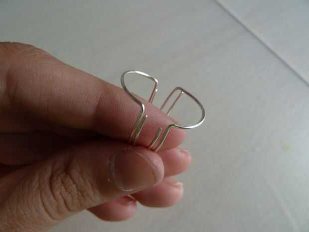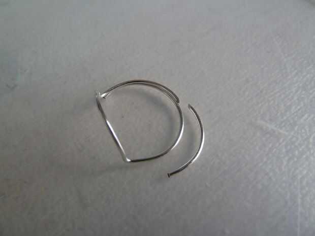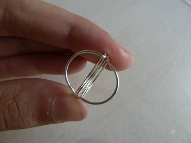 Como se puede ver, en este momento hay cuatro capas de alambre para el anillo de la base sí mismo, pero lo único que necesita tres. Cortar uno de los cables en la parte posterior del anillo en ambas mitades del anillo, como se muestra en las fotos.