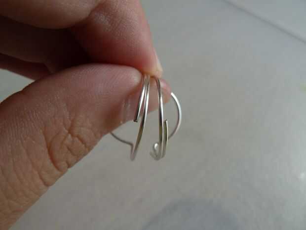 Asegúrese de que los extremos cortos (los que sólo cortó) están en el exterior del anillo, por lo que cuando se alinean los ve como en la foto se muestra a continuación.