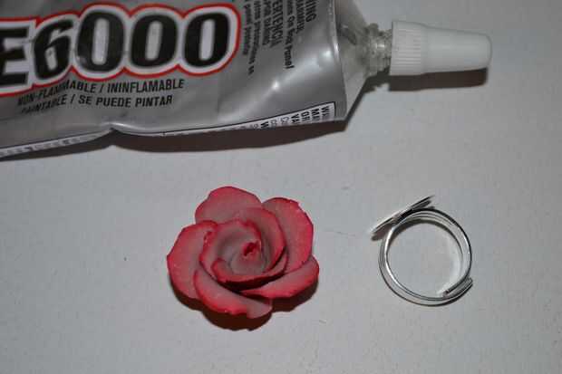 Una vez que la rosa se haya enfriado, añadir un pequeño toque de pegamento E6000 el anillo ajustable y pegamento en la rosa.
