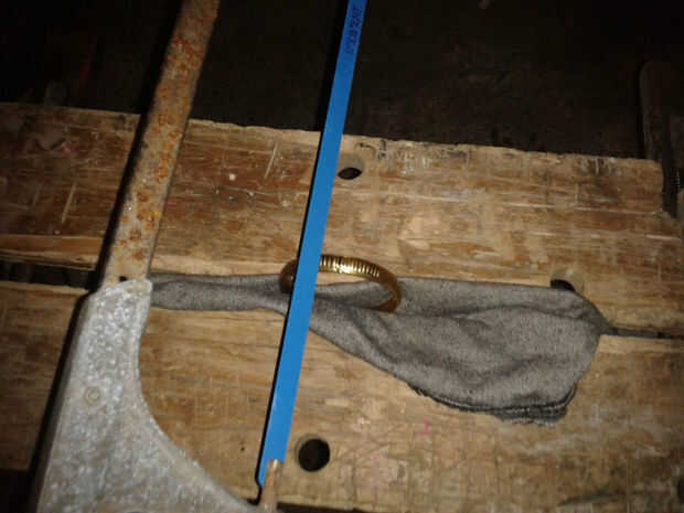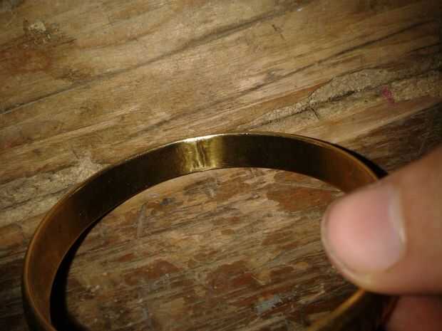 Tener tu banda de brazo y haga una marca donde quiere cortar. Debe ser en algún lugar cerca de su punto más débil, como era mía hacia una línea de soldadura previo en el interior. Una vez hecha la marca, corte cuidadosamente la banda con su sierra hasta que ya no es un círculo completo.