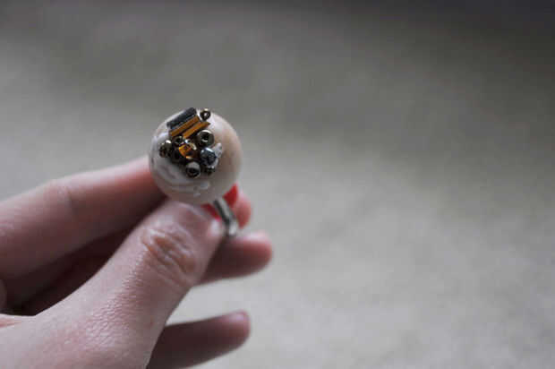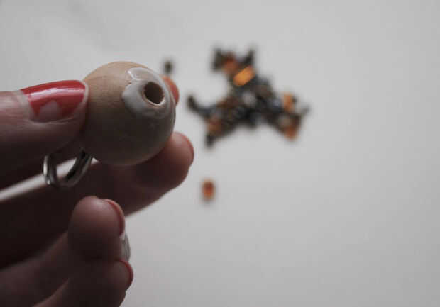 para hacer esto usted necesitará:• 3 anillos de cortinaadornos pequeños • 3• pistola de pegamento caliente• 3 pinchos de madera• 2 cajas de• paint\s de su elección• pincel• hilo de pescar o cadena• un trozo de cartónPaso 1: Paso 1 En primer lugar, or