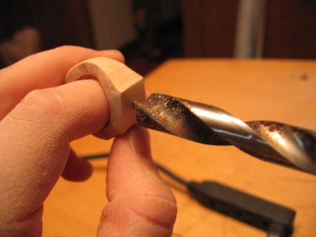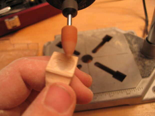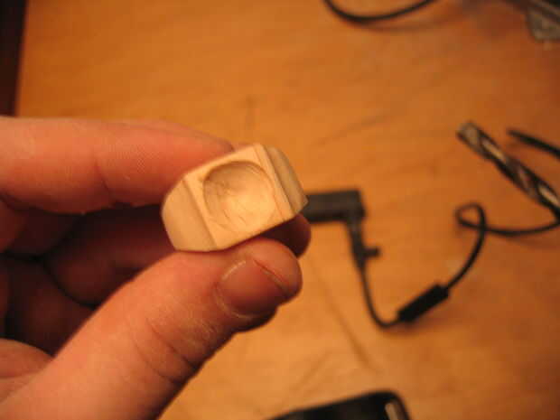 usé un taladro con una 1/2" broca para hacer un círculo en el centro de la cara cuadrada. Que no perforar toda la manera a través, profundo sólo lo suficiente para establecer mi pequeño artículo personal.