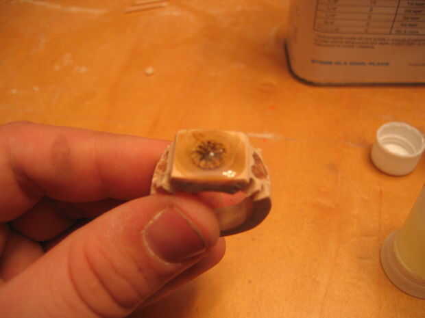 I mezcla una pequeña cantidad de resina y vertió cuidadosamente en el recipiente cubriendo completamente la yema.