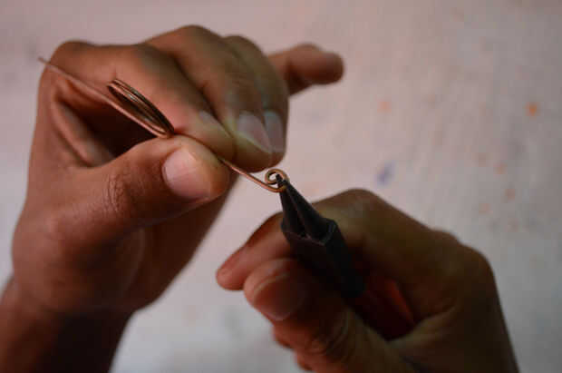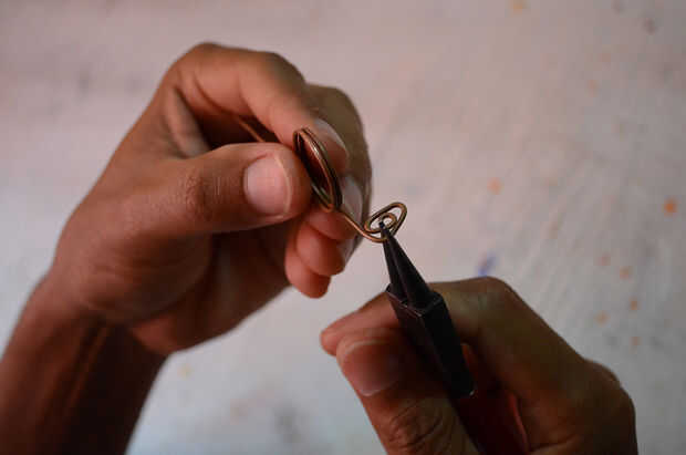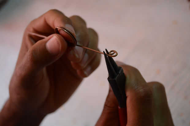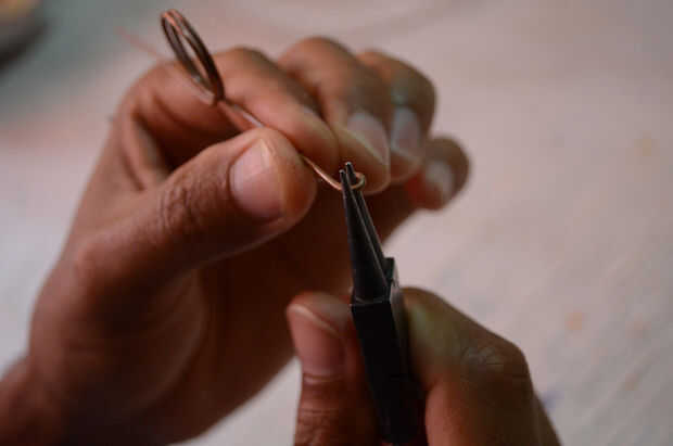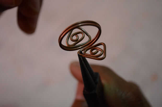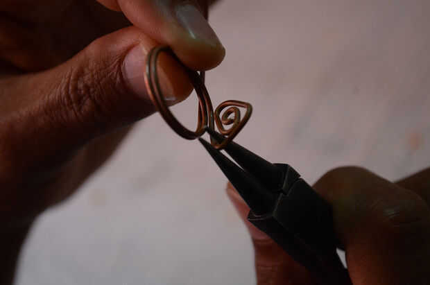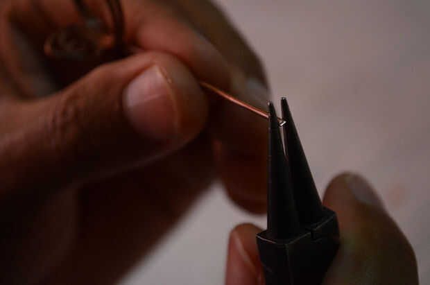 Con la punta de los alicates, molde de los extremos de la base como triángulos, por consiguiente a las imágenes. En esta etapa, ya puede utilizarse como un anillo, pero te enseñamos cómo establecer una semilla açaí a él, para hacerlo más interesante.