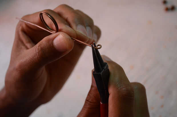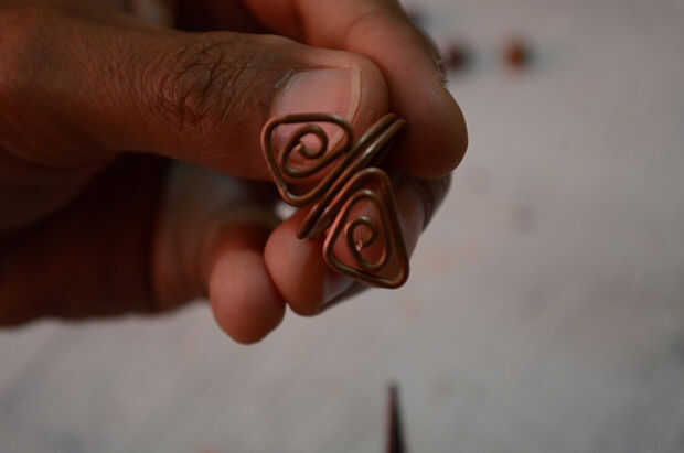 Anillo con semillas brasileñas de cobre (3 / 6 paso)