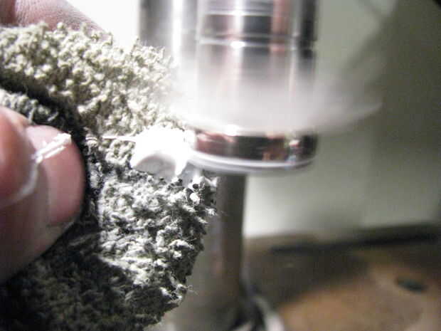 Mueva el anillo según sea necesario. Utilice el compuesto para pulir a un brillo para pulir. Ahora que el exterior es agradable, el tiempo para el interior.
