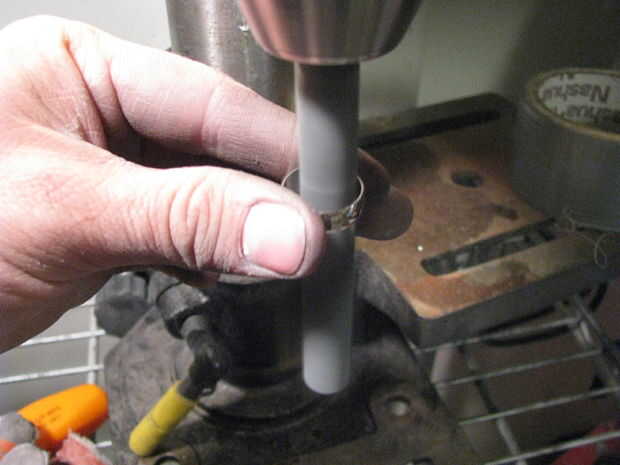 Tomar una broca de tamaño más grande y un trozo de papel de 1000 grano de arena para la cinta. Rollo de papel alrededor de la broca con la dirección de giro para el taladro. Alise los bordes interior y más fuerte.