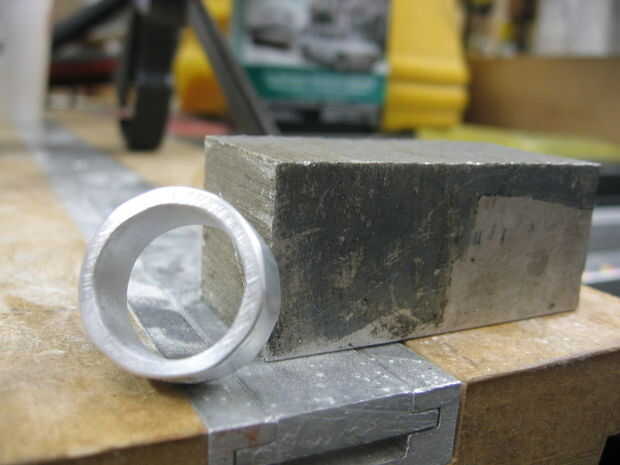 recientemente hice una forja / fundición y se han arruinado algunas latas de aluminio pop. Hice un lingote, pero no era tan grande. Tengo un amigo que hizo un molde para hacer un anillo, pero decidió mantenerlo en su lugar por lo que no usé un molde.