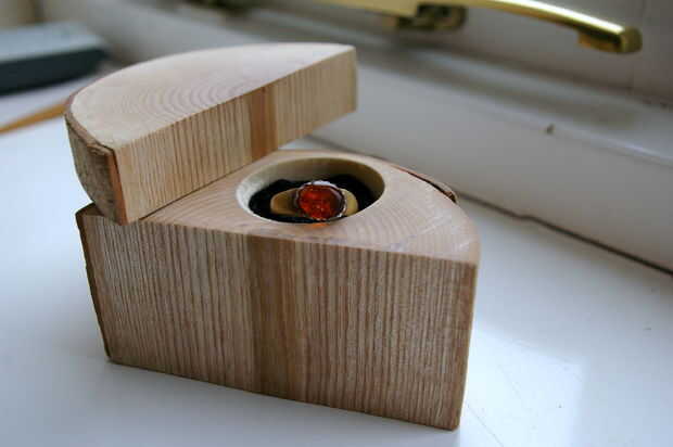 Y ya está! Inspirado por este instructable, hice una caja de presentación de un registro medio de la ceniza que lo contrario era condenado a quemar en la estufa de leña.