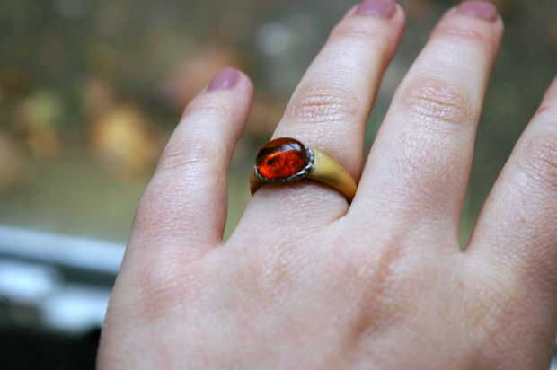 El latón deslustrará bastante rápidamente cuando se usa el anillo, pero eso está bien. Menos como oro parece, al menos la gente me pregunta si el anillo es que clase de anillo.