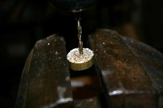 Usando un sacador de centro, marcar un punto en el centro el bronce para que el pedacito de taladro en. Esto no necesita ser central - sólo proporcionará una divet para la broca a morder y a evitar el deslizamiento.