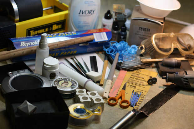 hoja en blanco de papel para pasar por debajo de papel de ceraherramienta de la aguja (http://www.metalclays.com)modelador de arcilla tamaño 0 punto cónico es que estamos acostumbrados (http://www.cooltools.us)taza o más caliente de la vela (fondo de comercio u otra tienda, pasillo de la manía) Asegúrese de que la placa esté nivelado y que no haga una inmersión poco profunda en el medioHattieS® QuikArt™ Plantillas de caña del anillo - B u otra guía para cortar un anillo de caña (http://www.metalclaysupply.com) y usted también puede hacer su propiabruñidor de ágata (http://www.metalclaysupply.com)tijerasbuena iluminaciónespejo para el control de secado de la arcillaBálsamo de tejón o aceite de oliva (poco uso) j (Cracker barrel para bálsamo de tejón)Cuchilla hoja de metal tejido (http://www.metalclaysupply.com) o maquinilla de afeitar de seguridadrodillo de fondant con anillos púrpura (pasillo de la manía o walmart sección de pasteles de Wilton)agua destilada en un recipiente no metálicoesponja cosméticafina (generalmente color de rosa) se recomienda (para la presentación de las uñas)pequeño atomizador de agua destiladacaminó el ring mandril w base (http://www.cooltools.us)hoja de claro semi flexible plástico como hoja plantilla ligero, protector de la hoja de acrílico de la página o la tapa transparente de una caja de tarjetas decalibradores de anillo (plástico o metal, cualquiera de los sitios de arcilla de metal)inversión material (http://www.metalclays.com) o las empanadas de anillo Hatties o gránulos Redy (cooltools.us) anillo sizer en el tamaño de su anillomedia vuelta set de lijado de palos (http://www.cooltools.us)hoja de sandpape finar (walmart)cepillo de la mano de acero (se parece un cepillo de dientes - http://www.cooltools.uso herramientas del norte, Puerto de carga)bloque de goma (http://www.cooltools.us)w herramienta Dremel pulido rueda y rueda de cepillo de acero inoxidable (de walmart Lowe ' s, reemplazo de la rueda y cepillo - http://www.ebay.com)protección para dedos (alcance de la mano de goma, cunas, suministros de oficina) o cortar los dedos de guante de látex o goma gruesaprotectora transparente gafas (yarda de la madera)pequeño lijado bastones (http://www.firemountaingems.com) se ven como q-tipsmina de joyas programable horno (http://www.cooltools.us) es un cargador frontal de Paragon. Tiene que ir hasta 2000 grados F