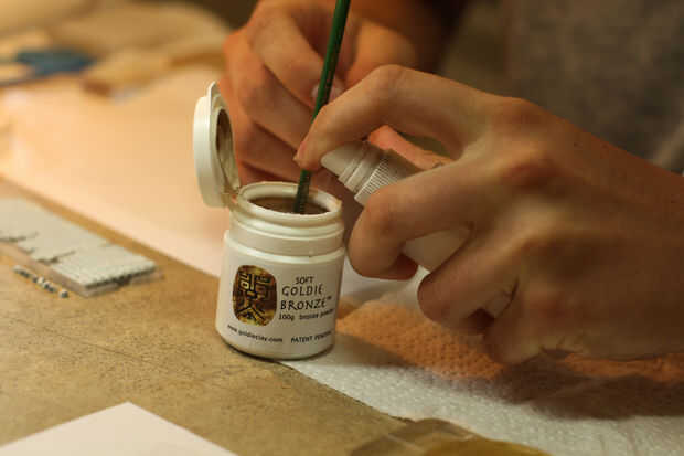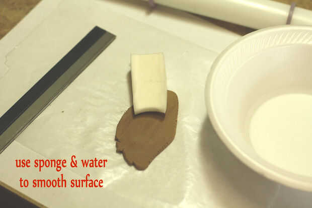 Desea que tenga la misma consistencia que la arena para su castillo de arena, necesita para mantener su forma, pero no debe agrietarse cuando está doblado ligeramente. Torre de perforación y mezclado con el extremo de un pincel. Lubricar muy ligeramente su rectángulo de papel de cera que se coloca sobre la hoja blanca de papel con Tejón bálsamo o aceite de oliva. Lubrique ligeramente las manos y el rodillo. Sacar la arcilla & start doblado y laminado fino varias veces para estar seguro es bien mezclado. Vaporizador de agua según sea necesario, usted conseguirá la caída de la misma! Si empieza a pegarse al rodillo, las manos, etc. también ha mojado. Déjalo sentarse 10 minutos en marcha, compruebe para ver si es menos pegajosa, si no, repetir.