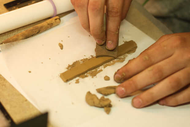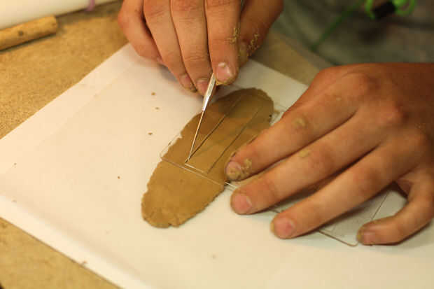 Tomar su lubricado anillo plantilla y colóquela en su rodado hacia fuera arcilla. Use la herramienta de la aguja para recortar su anillo. Con el