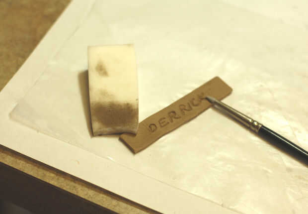 (ahora sería el momento de impresionar a un mensaje con su conjunto de fuente de la fuente de oficina o escribir su firma en el centro). Moje ligeramente este lado y todos los bordes, luego utilizan el papel para transferir sobre el mandril anillo. No junte aunque, sólo tiene que colocar un extremo sobre la parte superior de la otra.