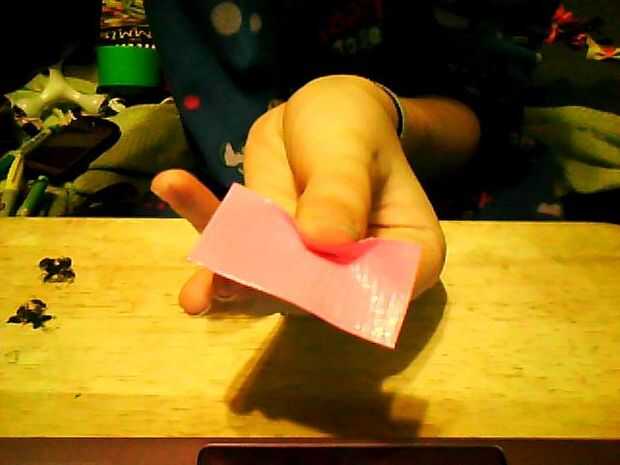 Vuelta la tira, si doodled, hacia el llano. Scrunch un poco de la parte superior hacia adentro entonces lo pellizque a la mitad. Lo mismo en la parte inferior.