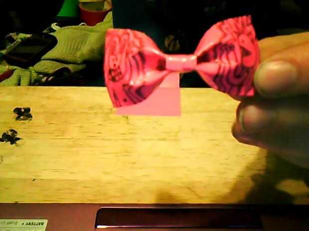 Cortar una tira delgada, la longitud de la anchura de la cinta y envuélvalo alrededor de la mitad del arco que le arrugó.