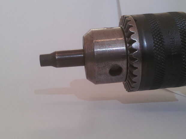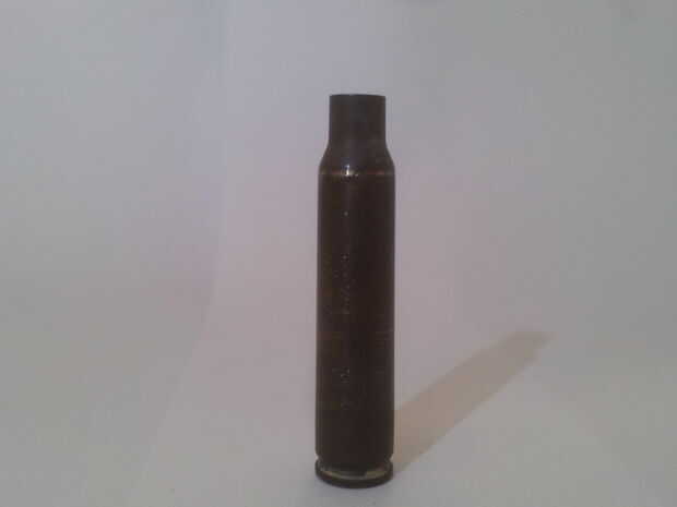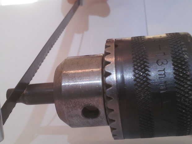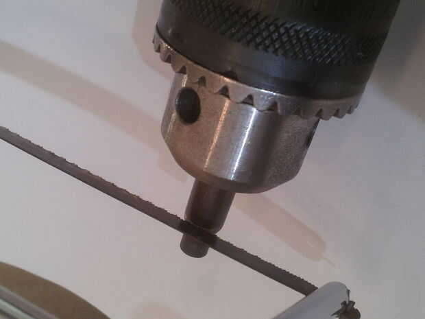 Poner la bala en el taladro con su parte angosta que se pega fuera y cortar con la sierra.