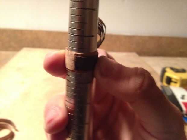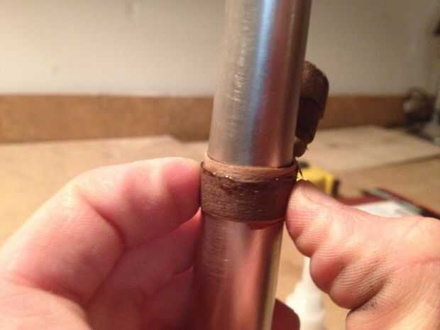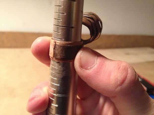 Empezar con la madera de color más clara. Inicio envolviendo el interior del borde, que lija, alrededor de la plantilla. Aplique pegamento en el extremo cónico y empezar a envolver la madera alrededor de sí mismo. Una vez que has envuelto una vez alrededor, corte extra. Ahora, continúe con la chapa coloreada más oscura y el mismo proceso de pegado y de embalaje. Teniendo cuidado de no pegar el anillo a la plantilla. Una vez que añades un poco de pegamento, envuelva la madera alrededor de sí mismo y mantener durante 10-20 segundos. Este tiempo permite que el pegamento unir la madera. Continúe esto hasta que su espesor deseado se logra entonces corte extra. Envolvió alrededor de 4 veces.