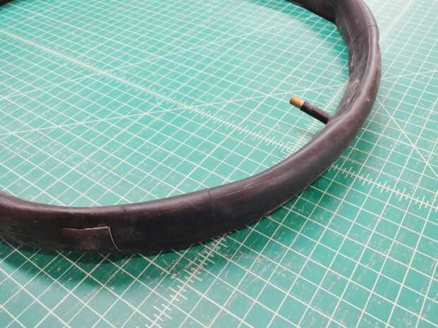 Empecé con un tubo interno viejo que había sido remendado muchas veces.