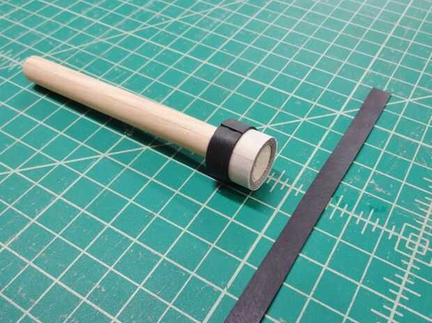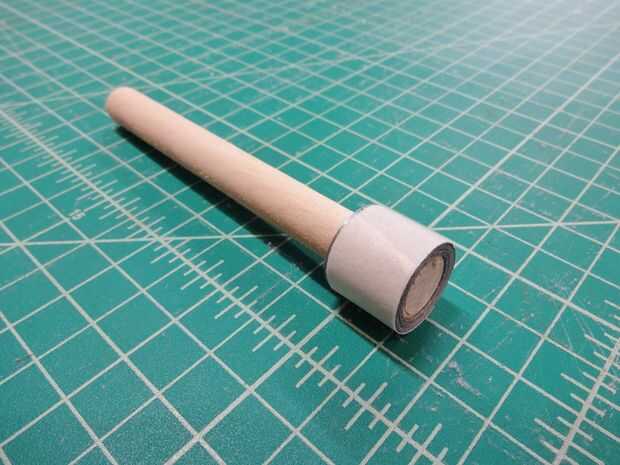 Coloqué una envoltura de cinta de enmascarar alrededor del muñeco de dedo lado adhesivo hacia fuera.