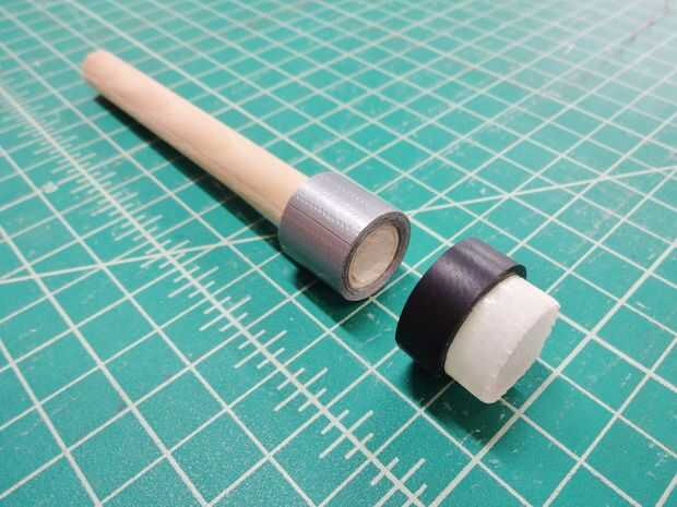 El anillo de goma se resbaló entonces fuera el muñeco de dedo, y la cinta adhesiva fue quitada cuidadosamente desde el interior del anillo de goma.