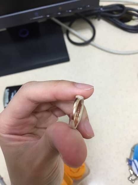 Si es del tamaño correcto, intente no conseguir cualquier CR en la superficie interna del anillo.