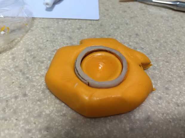 Empujar la masilla en medio del anillo y luego empujarlo nuevamente hacia abajo para reducir volumen en el centro.