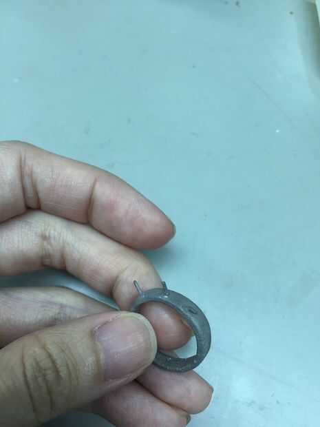 Como puede verse, mi anillo no tenía un bebedero conectado debido a insuficiente en aleación. Esto dio lugar a porosidades.