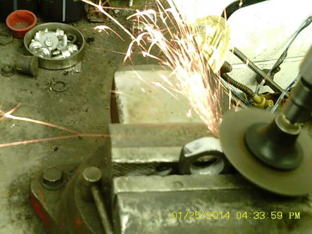 Con un curso de abrasivo disco de molienda de tres de los puntos de las tuercas y alrededor de la parte inferior de la tuerca.  Quite la culata hasta que el ajuste es cómodo y la forma es lo que quieres. Había adelgazado abajo de los lados y la cara una buena cantidad. Cambiar a un disco abrasivo más fino para suavizar la superficie del metal.
