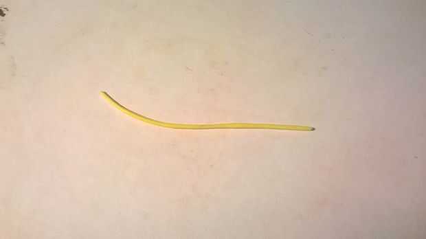 • Extienda una pequeña cantidad de arcilla amarilla en una cuerda fina y coloque encima la salchicha.