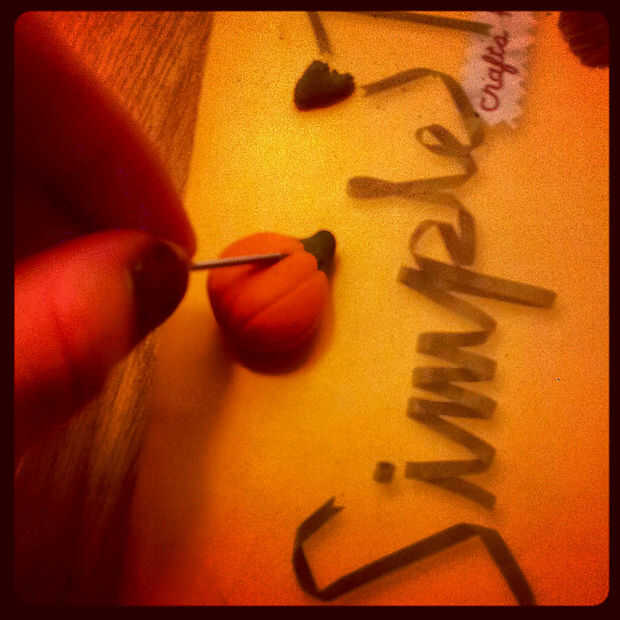 Añade textura a tu anillo de calabaza, tome la herramienta de punta fina y hacer líneas curvas del centro de la parte superior e inferior, dándole una forma 3D. Echa un vistazo a una bola de la cesta para darle una idea de cómo hacerlo. Luego añadir arañazos pequeños y rápidos en el tallo para darle una textura áspera.