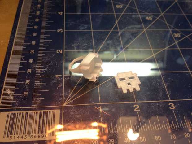 Para terminar el anillo, golpeó el real asperezas con una tambor de lijar dremel (no demasiado, la velocidad del tambor tiende a fundir el PLA), y luego terminó con una mano de 180 grano lijado para suavizar todo. Una vez que el acabado tan liso como desee, sólo poner una gota de pegamento en la parte plana oval del anillo y pegado a la parte de la caja del cráneo en el anillo (cura rápido, así que asegúrese de colocarlo donde quieras bien lejos, no mucho tiempo para moverse alrededor). Luego puede ajustar el rostro de calavera en la caja y listo ir.