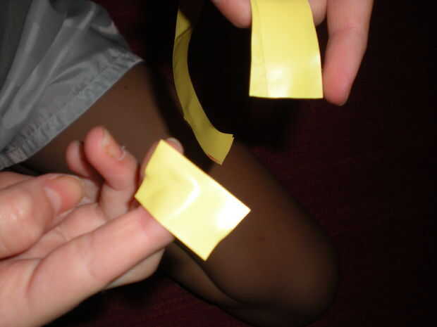 Paso 1: Lo que se necesita se necesita conducto de cinta tijeras regla una regla flexible generalmente para coser o una cadena para envolver alrededor de su dedo y luego sólo medirloPaso 2: Mida el dedoPaso 3: Corte y doblez cortar cinta del conducto