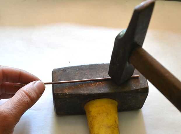 Un poco de martillo el cable, girar constantemente con la otra mano, para enderezarla hacia fuera bien.