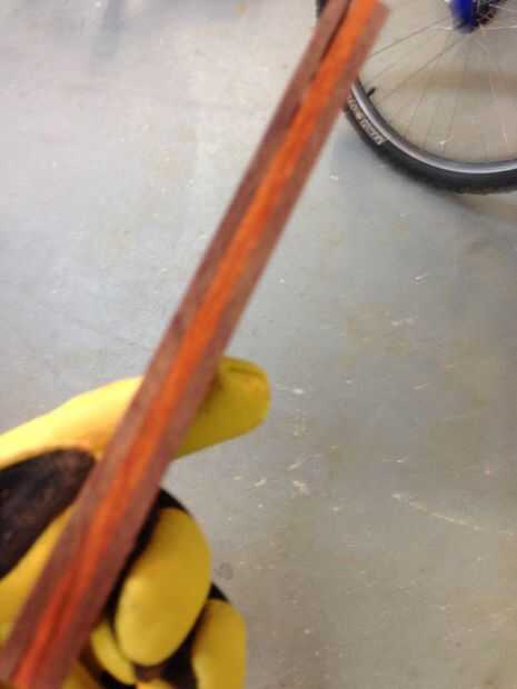 Unir tres hojas de madera en el patrón que desee. Pegué dos tiras de nogal y palo de rosa.