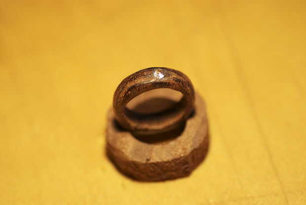 Como se mencionó, debo encontrar una manera mejor de manejar la joya. La plastilina con hojas algunos residuos de la madera.