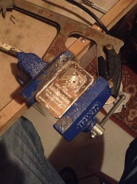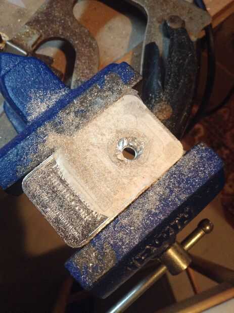 Conecte a tierra el círculo hacia fuera con una dremel pulido poco (no la rueda). Les recomiendo use brocas para taladros pequeños y poco a poco subir de tamaño como este ahorrará usted horas.