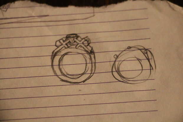 El diseño inicial fue creado en la parte posterior de la hoja de notas en el boletín el domingo por la mañana. No pude decirle lo que el mensaje fue ese día. Que se dibujo una cruz en la parte posterior del boletín y otra Cruz enfrente de él. De repente una forma de anillo apareció en mi cabeza. Volvió a dibujar las cruces y dado vuelta en un anillo de una media docena de veces tratando de resolver lo que parecía correcto y qué no. Es simplista, cristiano tema y hermoso, en por lo menos en mi mente.