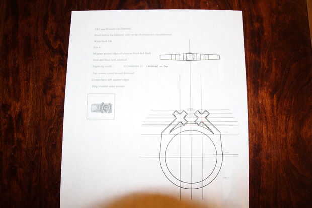 En la mano tenía el anillo de cera, los dibujos de Powerpoint, una lista de detalles que quería en el diseño del anillo y mi especificaciones del producto final.