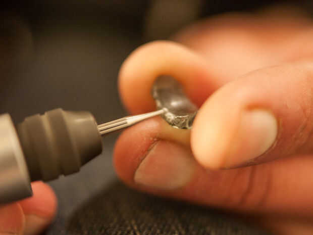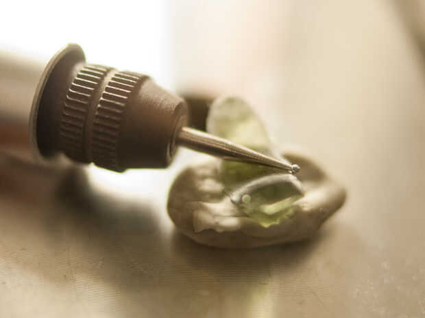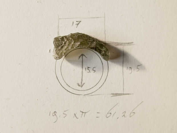 Cuando tienes la sensación de que la piedra es casi en forma correcta, puede utilizar algunos modelos de arcilla para hacer un anillo de prueba. Esto es solo para ver si la piedra necesita algunos ajustes.