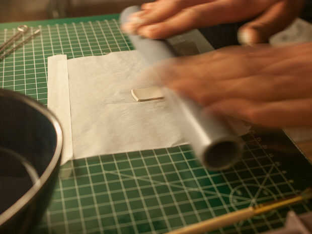 Modelado en arcilla de plata funciona casi de la misma manera como con arcilla normal, solo me pareció un poco más suave y algo más pegajoso. Puse un papel de soporte en el tribulet para que la arcilla no pegue demasiado.