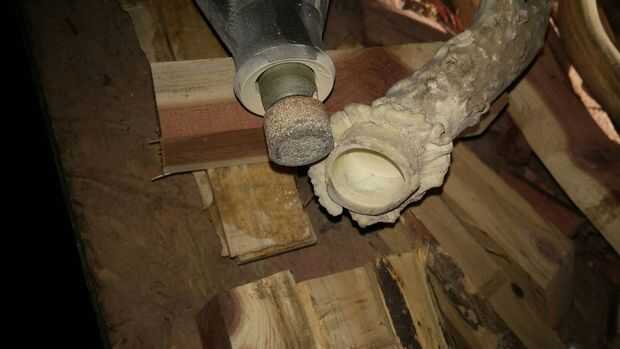 Después de tomar con cuidado los cuernos fuera, hacer el agujero para el anillo... esto se puede hacer usando una herramienta dremel o una prensa del taladro.
