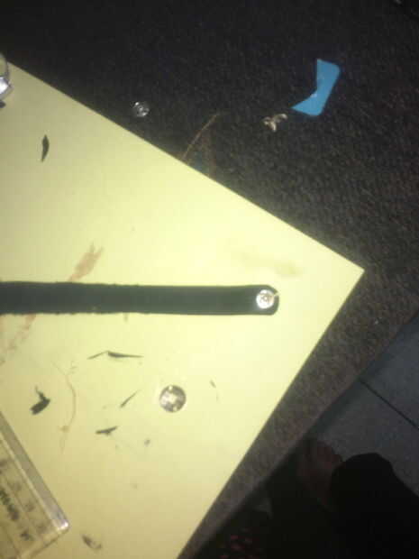 coser el botón de tich en el cuero. y ciérrelo. Coloque una pieza de decoración en la parte superior.