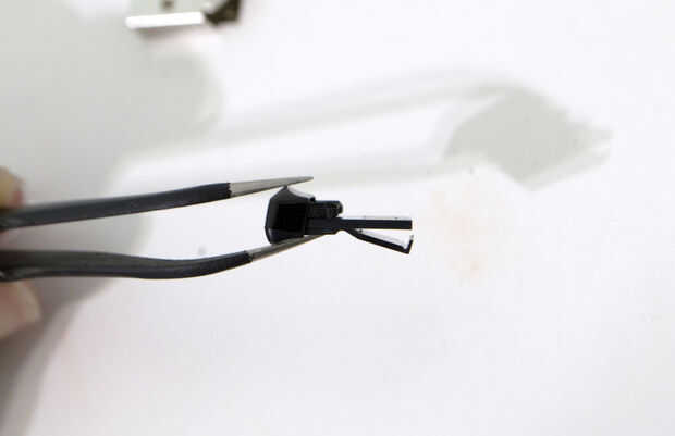 Lo necesitaba para ser más pequeños para caber el anillo, así que desmonté para obtener sólo sus entrañas. Me arrancó el plástico con unos alicates y procedió a rasgar el cubierta como del metal. De ahí la cubierta plástica de la viruta se puede deslizar hacia fuera, pero debe ser guardado para el siguiente paso.