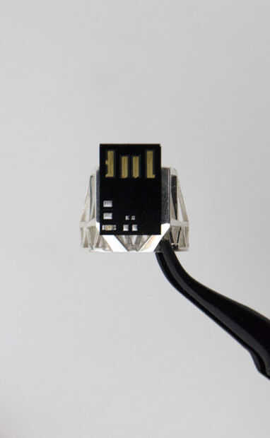 Desde aquí me di cuenta de que la viruta sí mismo era demasiado delgada para caber en un puerto usb, pero la longitud y la anchura sabio fue el ajuste perfecto para el anillo.