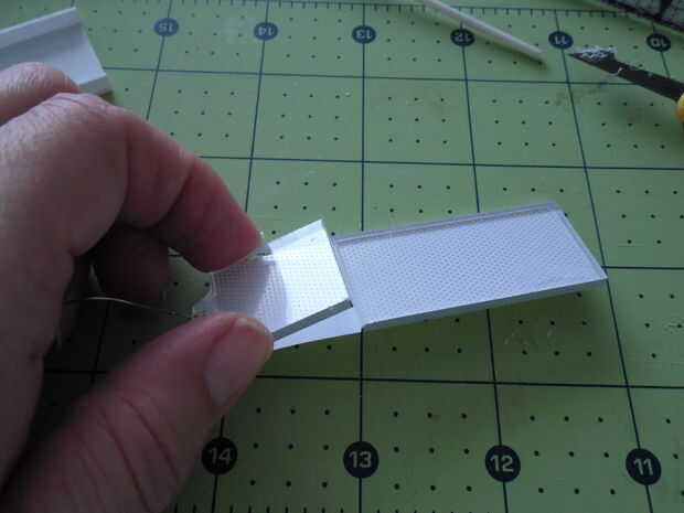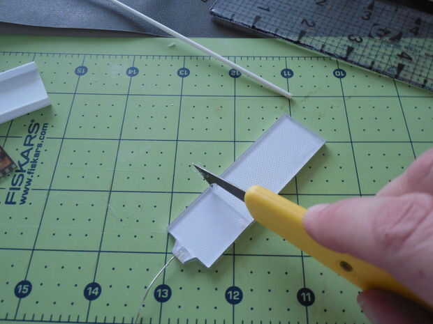 Mira la foto, verá la (medida.960 va desde justo debajo de la entrada del led) es donde el corte. El cuchillo de plástico funcionó bien para mí, después de marcar, utilice el cuchillo para cortar los lados de la hoja, el mosaico azulejo tenazas snap el acrílico en la marca, luego use el cuchillo para cortar a través de la capa posterior. El borde de la arena suavemente, limpie.