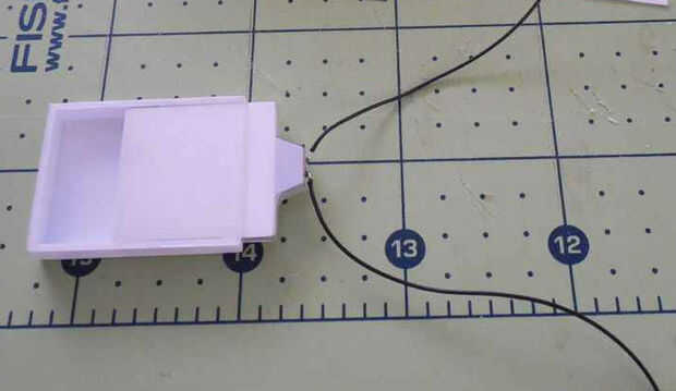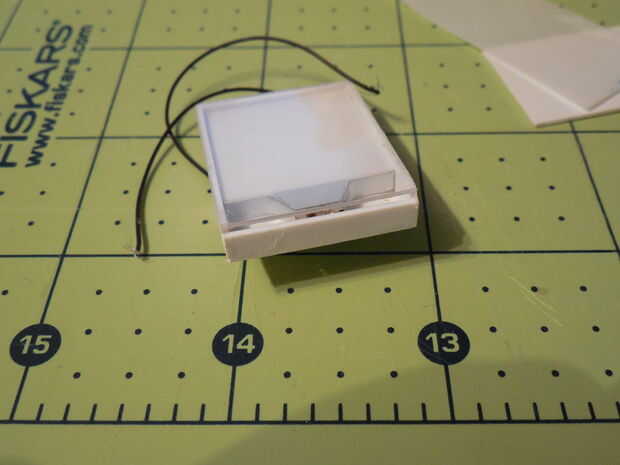 Ahora que eso se hace coger un pedazo pequeño de doble pegue cinta se aplica a la parte posterior del módulo, colóquelo en el marco, tomar la punta del soldador y quemar 2 pequeñas muescas en el borde superior hacia atrás, como cuadro, esto es donde van los cables.